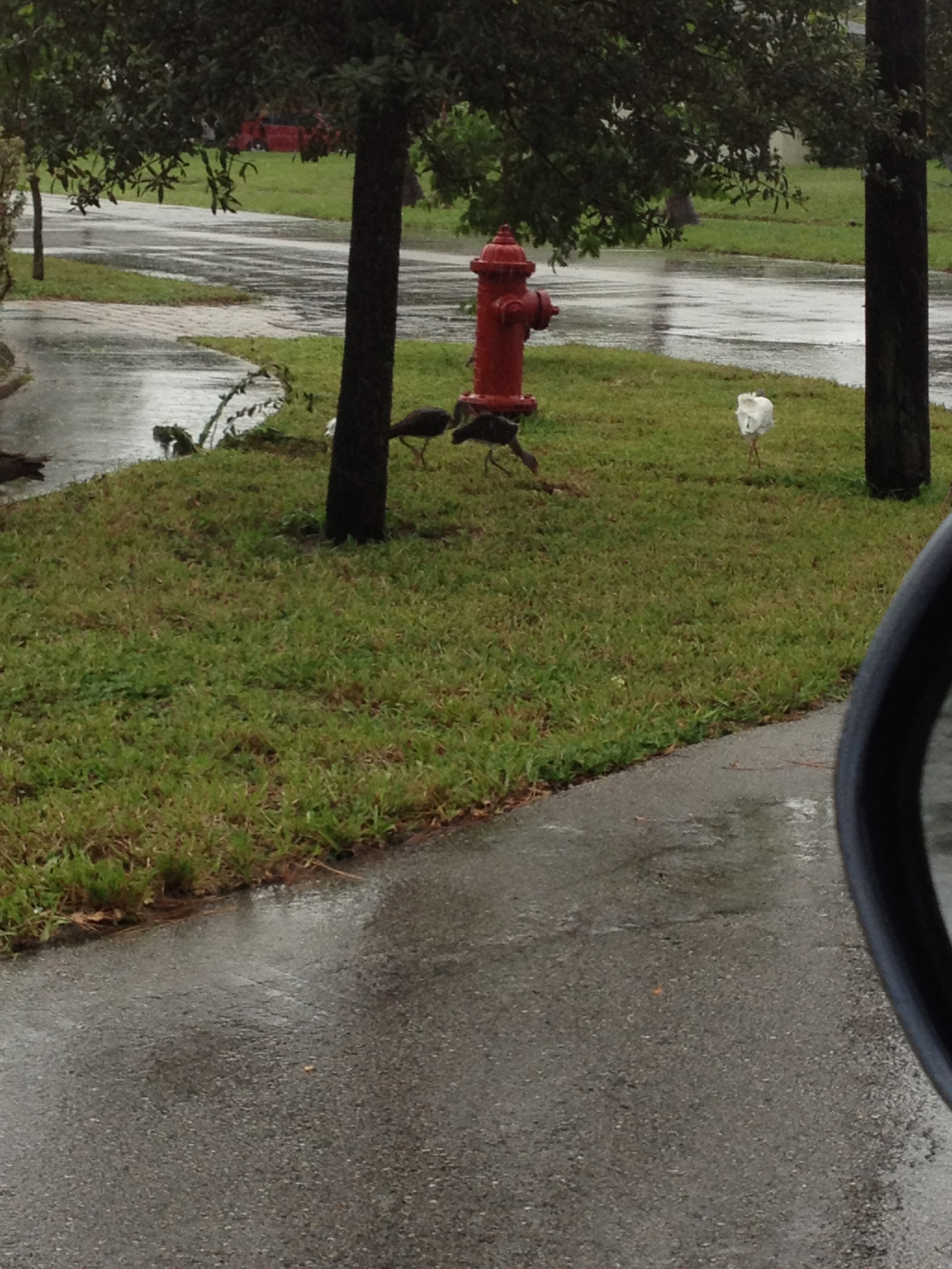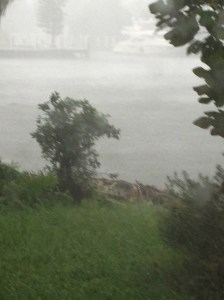 Later in the morning, around 9, another much more intense band came through–when that happens, you can barely see through the rain.