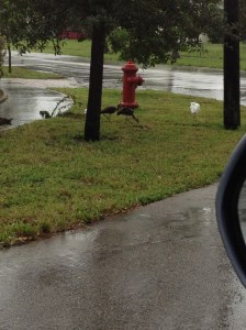 On my way there, I came across a group of ibis feeding along the side of the street. These birds amuse me no end and I know my friend Robin likes them too so I stopped to take a snapshot. If you look closely (and I’m sorry, the quality of the photograph isn’t great), you can see what the wind is doing to the white ibis at the far right. Gave a whole new meaning to the concept of “ruffled feathers”…