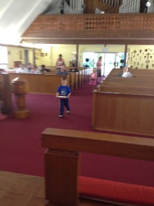 Ian and Sarah are happy, active children who struggle to sit quietly in church. We found out yesterday that they are also great at helping take up the collection. It made my day to see two little kids look so happy to be a part of things in church.