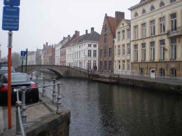 I caught my connecting train to Brugge and finally got there early in the afternoon. It was cold, grey, windswept, and beautiful. Just beautiful. I was staying in a B&B in one of the oldest parts of town; walking with my backpack on my back through fog that would break here and there along the way from the station to the B&B was like moving through a dream. I spent the whole afternoon walking around with my mouth hanging slack. There were places I recognized from the film, especially the belfry. There were a lot of areas that were way too touristy to be very attractive. But in the dead of winter, the city was almost empty and revealed itself quietly and gently.