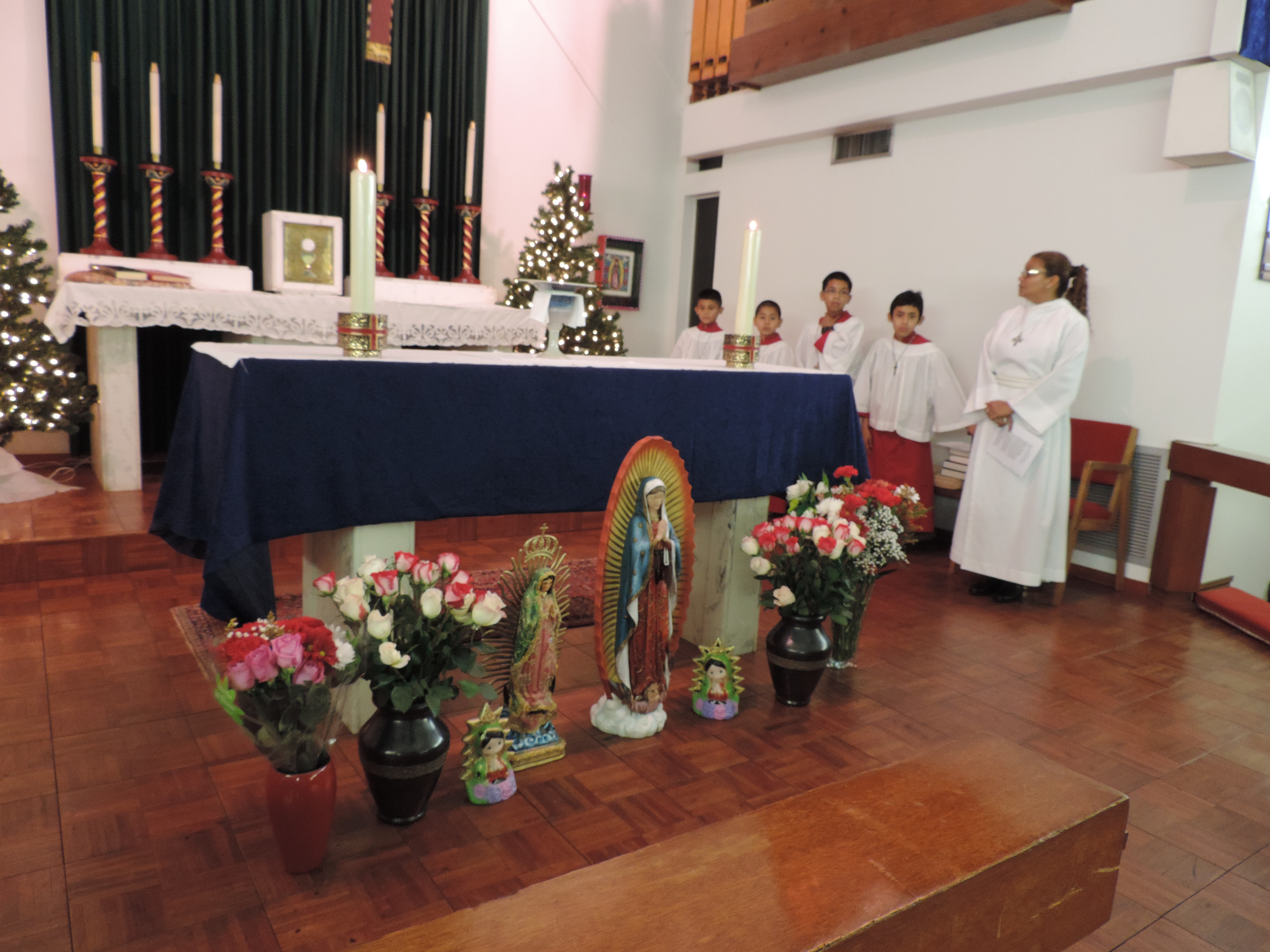 In 2007, El Centro Hispano de Todos los Santos had moved into our first storefront. As December approached, we began to plan how we would celebrate Christmas. Already, a good part of our congregation was from México and Guatemala. There was no way not to stop to celebrate the feast of “La Guadalupana”. We hired us some Mariachis. In a tiny plot of dirt in the middle of concrete we planted plastic roses and we made a banner of Guadalupe. We processed down Davie Blvd for a block and half while people looked on quite confused–a woman priest, deliciously sweet acolytes, Mariachis. Then, we placed the banner in the middle of that beautiful dollar store garden of roses; we sang and prayed for a while longer and rejoiced at what we were discovering about who we were.