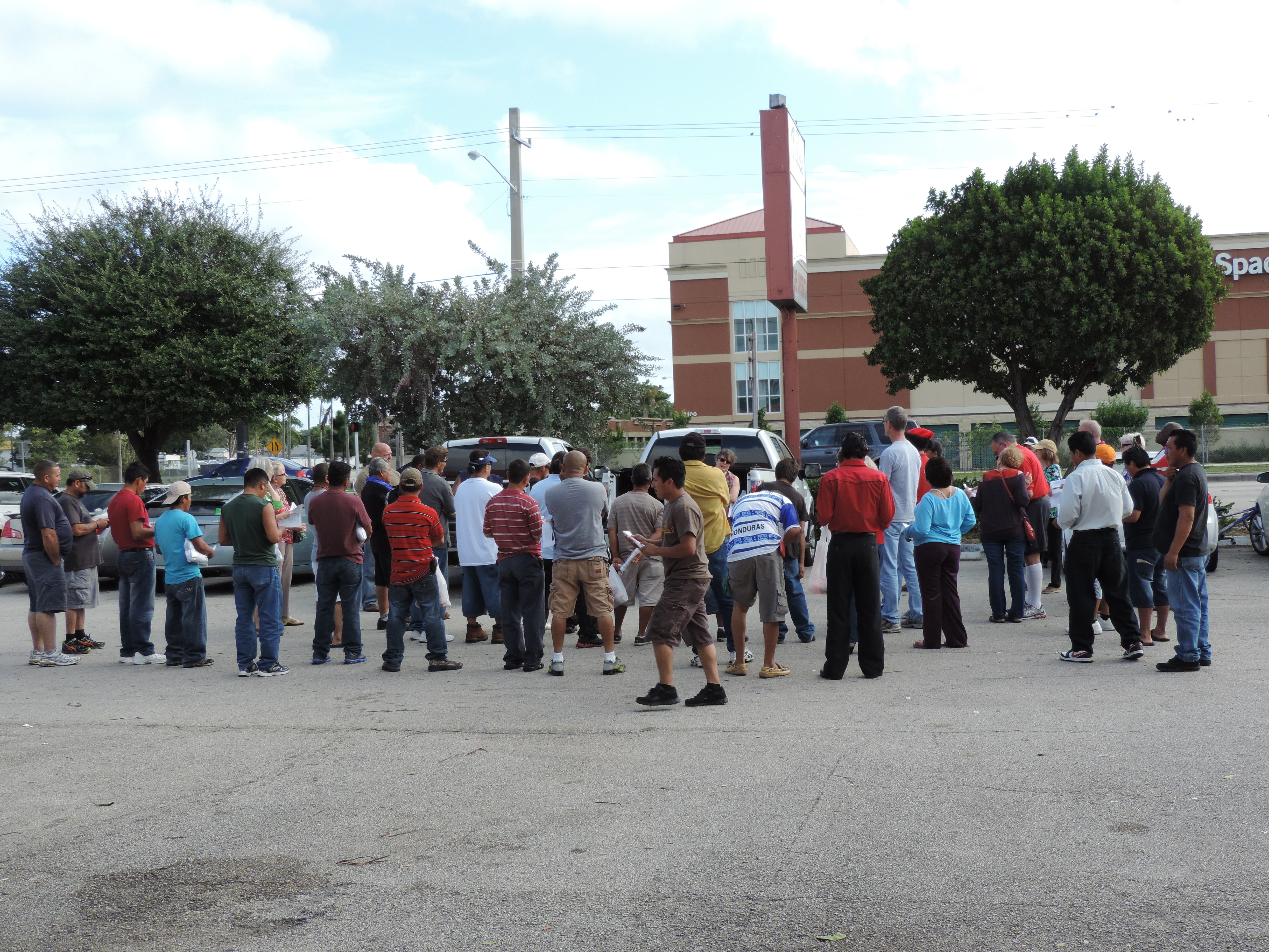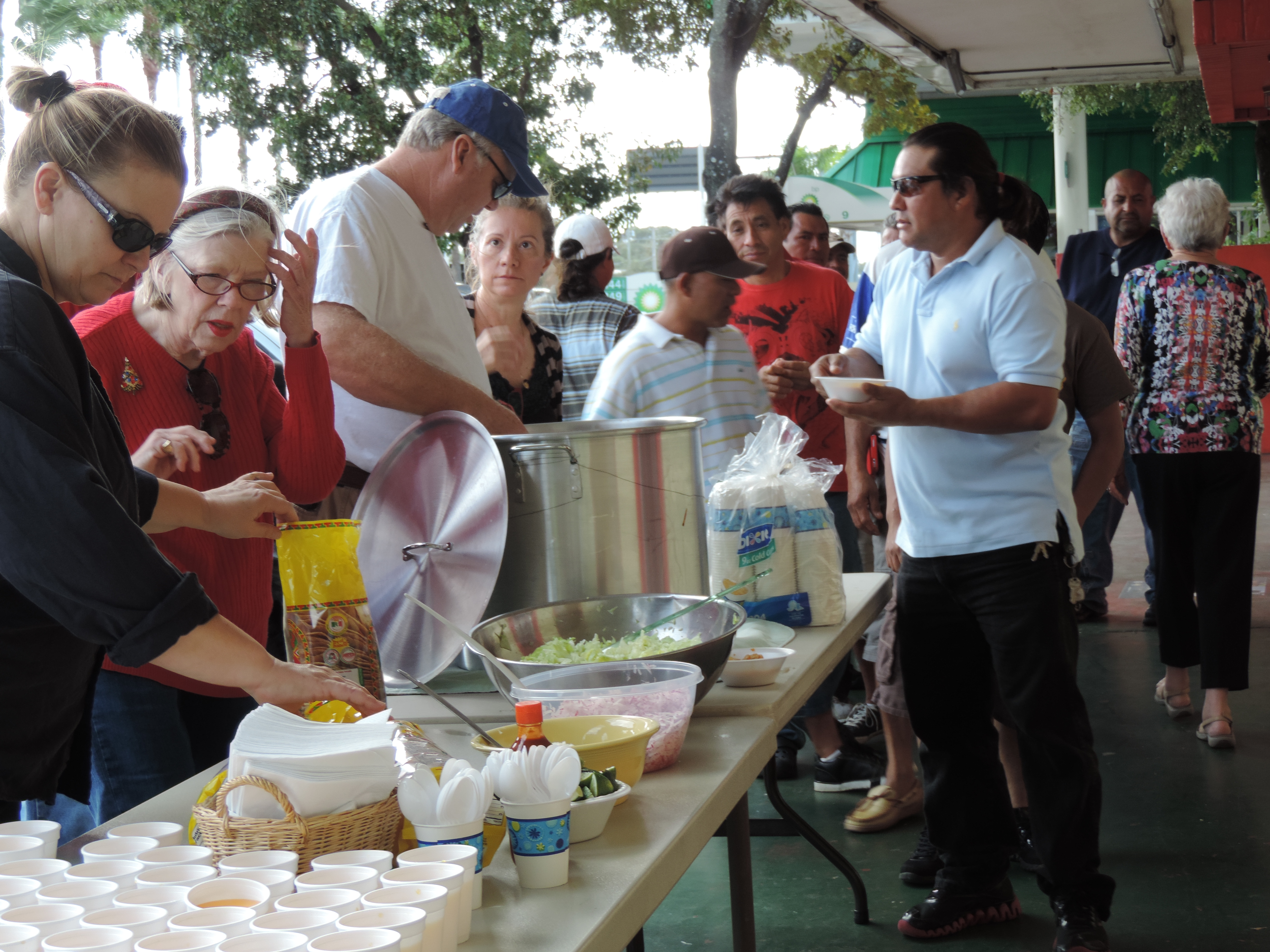For a seventh year we gathered at the parking lot in Vilas. At first, it looked like only a handful of day laborers would come for the Christmas service and breakfast we had prepared. ICE has been very aggressive–there have been lots of deportations from that spot in the past few weeks. And then the men started showing up, little by little, lots of familiar faces, the hugs and the sense that together we make Christmas.