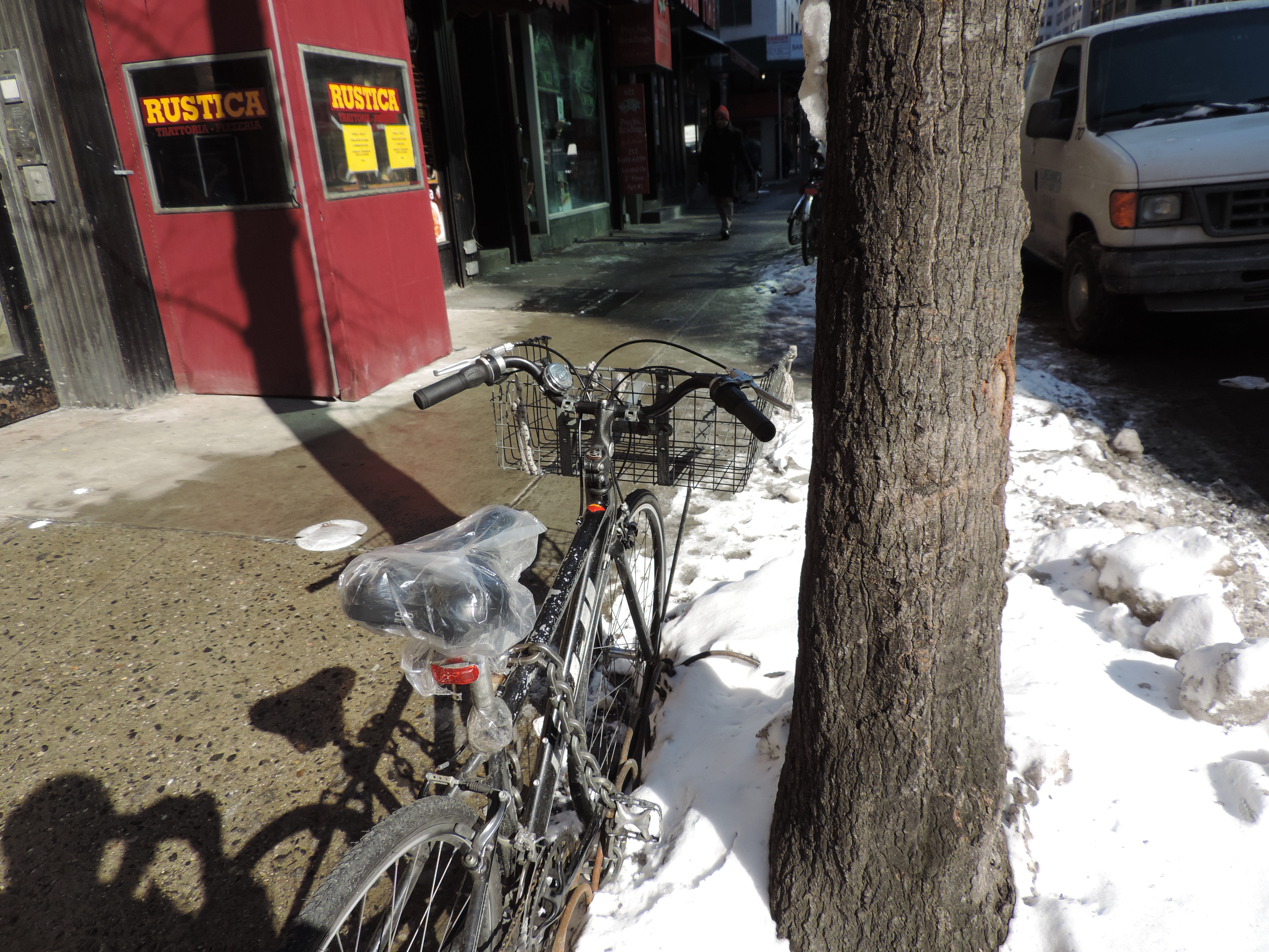 I did it! I made a snow angel and it was colder than all get out because right under the snow was a layer of ice. I had been talking to a pair of workers who were shoveling snow in Central Park and they drove by on their golf cart just as I got started crossing over a little fence into an area of perfectly untouched snow. One of the guys was a Salvadoreño whose daughter is studying cinematography at NYU and offered to take my picture.