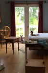 I unpacked every single box in this pile.  Most I had planned to unpack anyway.  Then on Sunday, we got a really heavy rain and water came into the garage.  All Sherod’s boxes–the ones that had the garage/shop treasures like drills and nails and bolts and screws, and the electric train he got as a little boy–all those were in the garage.  They couldn’t be left wet to mold and rust so I had some extra lifting, sorting and putting up to do.  My biceps are coming along nicely.  And, knock on wood, what I learned about lifting from courier training at FedEx has meant that I have not had any back pain, at least not yet.