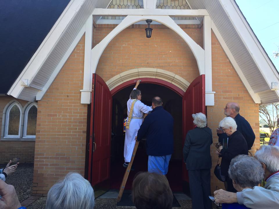 I received a beautiful Epiphany practice from the previous rector at Church of the Ascension and I am thankful for having been able to bring this gift with me to Holy Comforter. Right outside the red doors of the church we stopped long enough for me to clamber up a ladder to follow the old, old tradition of blessing the lintel: 20+C+M+B+19.