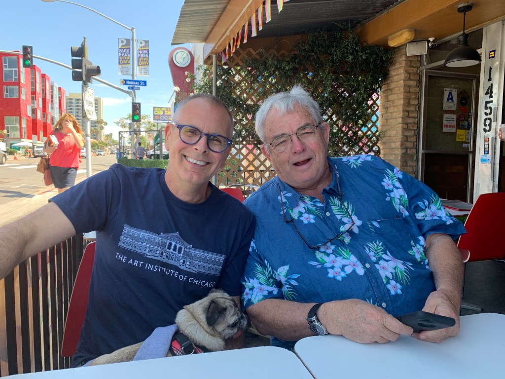 We got back to San Diego, got settled in the Airbnb we’re staying in for the remainder of our time here and crashed early. This morning there was a text from Len and then a flurry of texts back and forth. Schedules were rearranged and Len, together with the two pug girls he got from a pug rescue organization in Korea, Rosie and Viola, drove down to hang out with us. The traffic he encountered was minimal and we ended up having this big, beautiful chunk of time together that just made my soul sing.