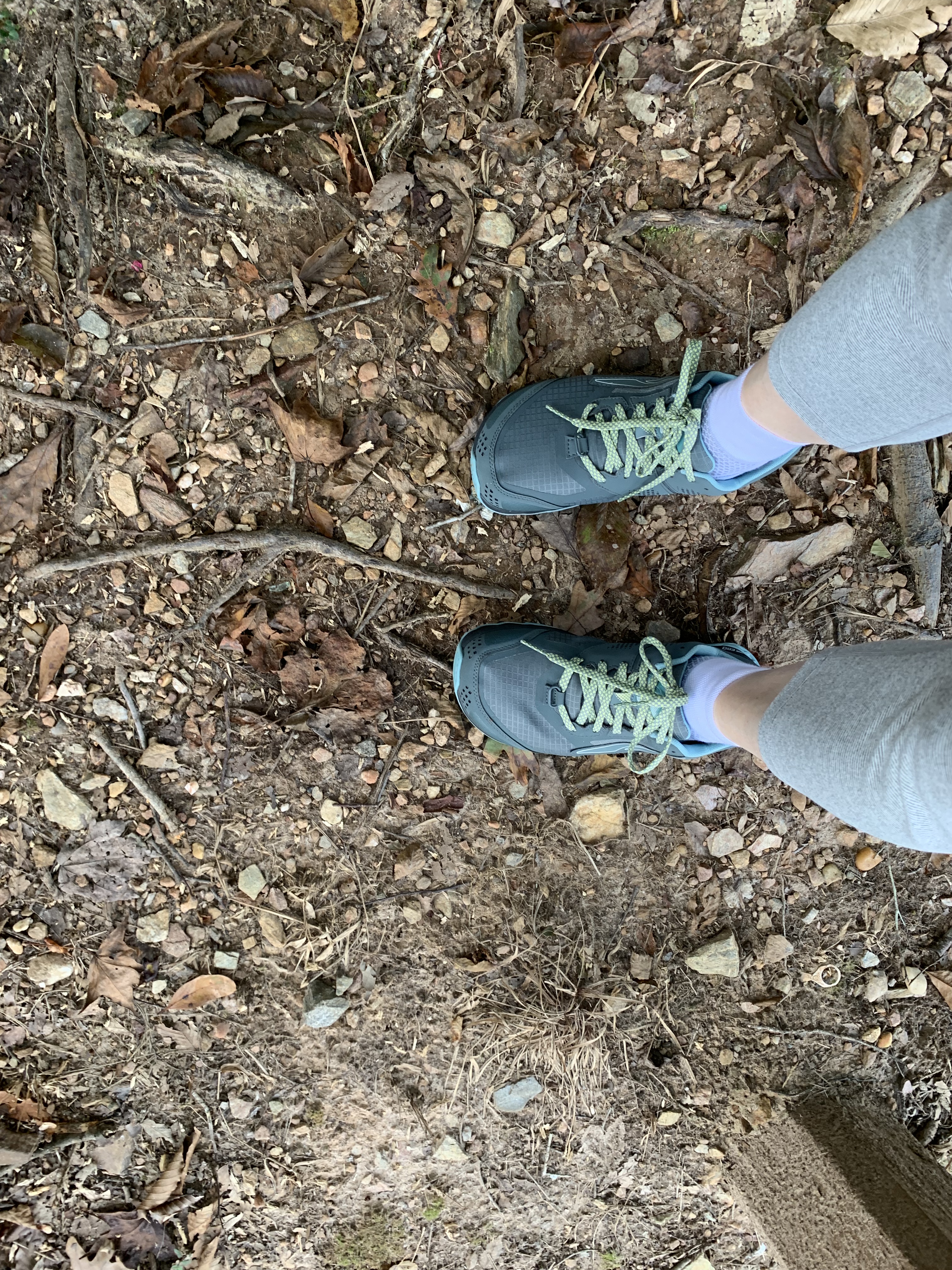 I found out the leggings I was wearing were way too warm for a muggy day in Alabama but that the recommendations I’d read for footwear for the Camino de Santiago were spot on. The big deal when you are walking a long distance is avoiding blisters. People do things like put a film of Vaseline on their feet as the first step in getting ready to walk. A couple of places, I’d read you should wear toe socks that wick well, and then put on another pair of socks that also wick well and provide some cushioning. Instead of hiking boots, hike running shoes that are light, fast drying and cushioned seem to work better. I got myself a pair of Altra Women’s Lone Peak 5 shoes based on those recommendations. While I didn’t do the Vaseline routine, I did everything else and boy, mine were happy toes and feetses. I had no hot spots, I had no place that rubbed, my shoes felt sturdy and provided good traction. I will certainly keep using them to hike.