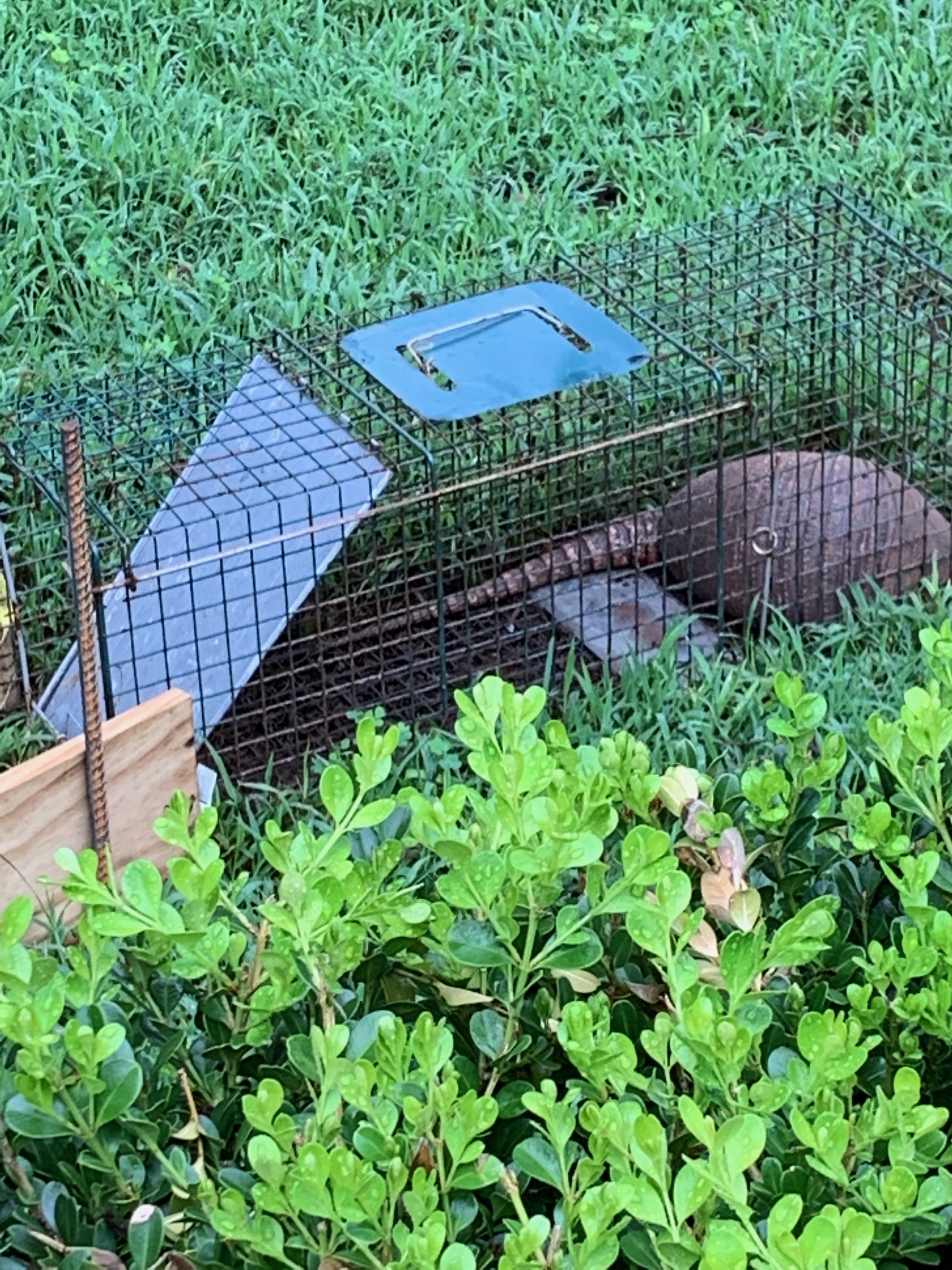 Then he said that I should tell Sherod he needed to reconsider his armadillo trapping plan. For several months, our back yard has grown increasingly pock-marked, with small holes about 4 inches across and maybe 3-4 inches deep. That back lawn has been beautiful in the past and it has been making my spouseman nuts to see all the damage to that pristine lawn of his. He decided the holes looked like the work of an armadillo so he set up a trap. In case you don’t know, armadillos are blind so you set up these two by fours in a V-shape with the trap at the point. The armadillo ventures into the V, doesn’t know to turn around and ends up getting stuck in the trap.