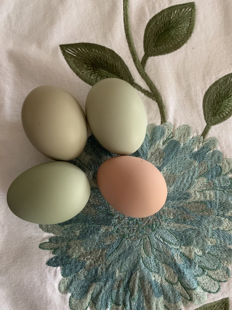 I’ve been wondering why that was so. The best I can understand why it has been so good is because this is all so incarnational. I must ensure there’s good air circulation in the coop to prevent ammonia vapors from building up and affecting the health of the chicken ladies. I’m using the deep litter method to help with this which means weekly, I pick up a shovel and turn all the pine shavings over and add some more. Then, I scatter something called diatomaceous clay on the litter, as well as herbs and a dry flower mix that helps keep mites and lice at bay. There is utter satisfaction when I finish that work each Saturday and stand in the coop that is so sweet smelling, so fragrant. Daily feeding, daily starting a new batch of feed that needs to ferment for three days, and now, daily picking 5 or 6 extraordinarily beautiful eggs. The list goes on. And it is heaven!