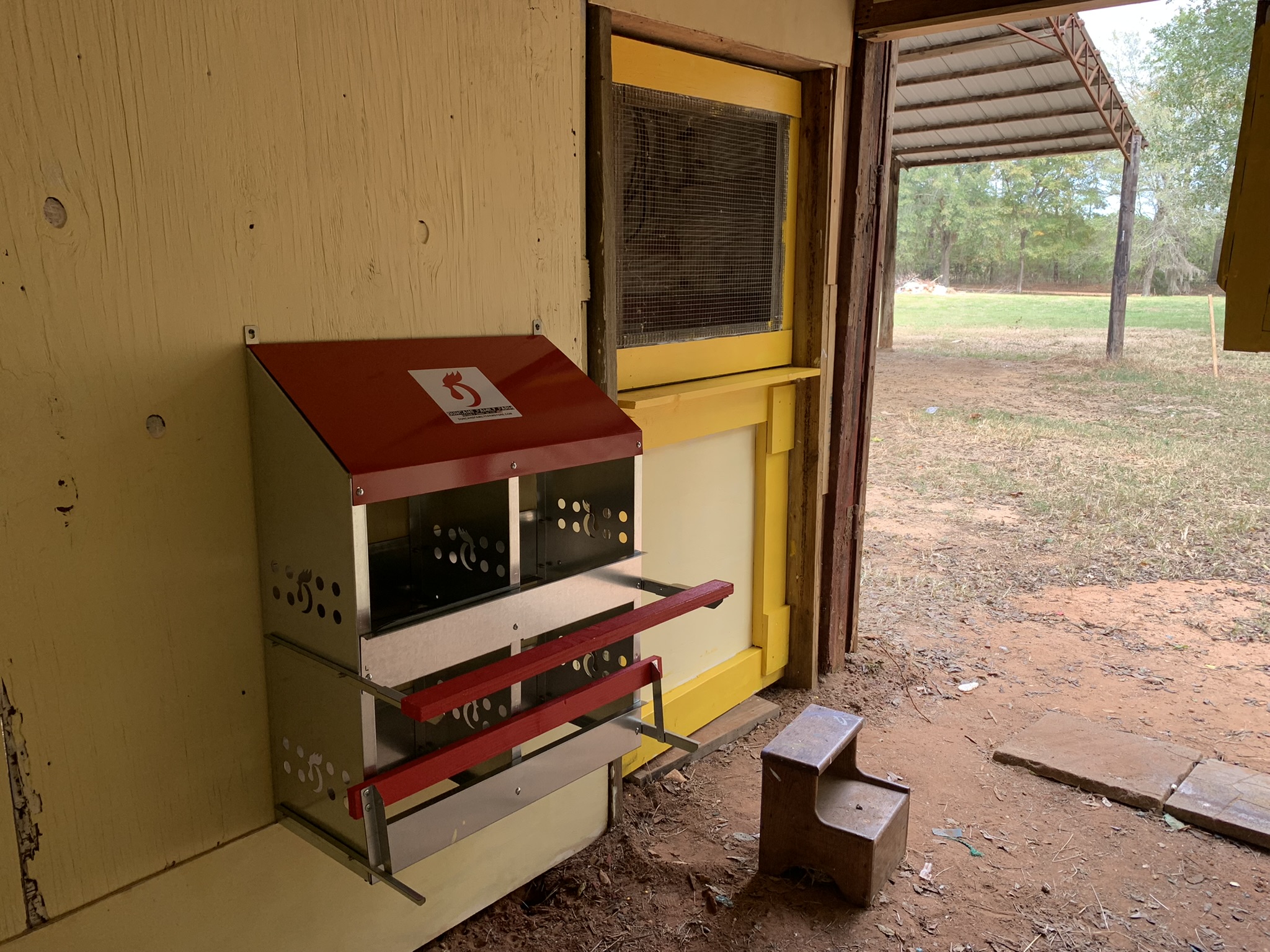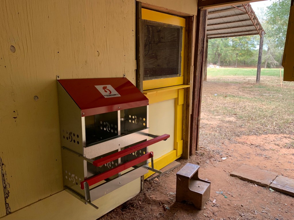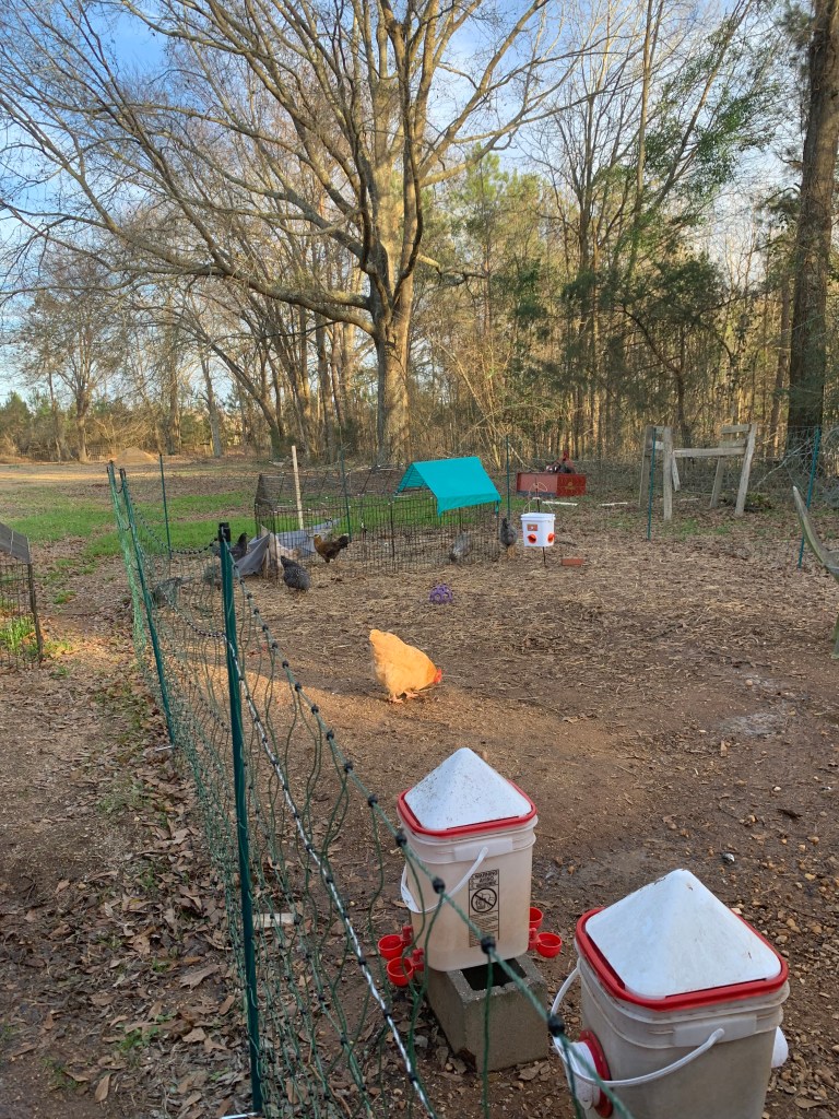 So what’s left? We are making roosts for the ladies (and I read they should all be equally high because otherwise the pecking order fusses that get stirred up are mighty). I will rake out a lot of the dirt on the bottom of the coop and we are going to cover it with pea gravel (Bubba’s Materials in Prattville sells them for a reasonable price); this helps with drainage. A five or so inch of pine shavings will cover the gravel. We keep finding spaces a snake could slither through but those are easily closed with insulation foam. And then, it will be time to set up the electric fence to keep predators away during the day. Our older ladies will go into their new space in about 2 weeks and our newest babies will follow about 5-6 weeks later.