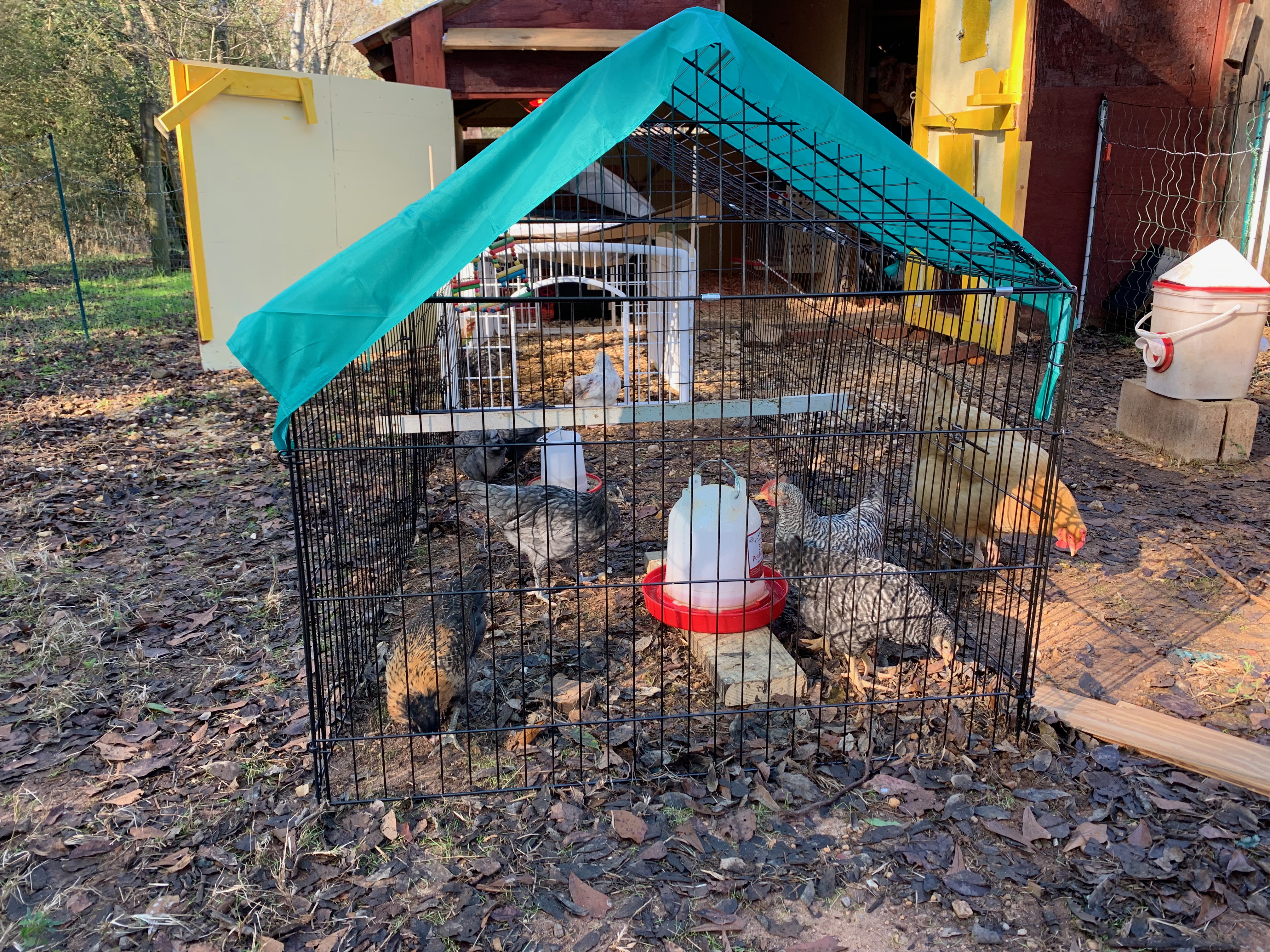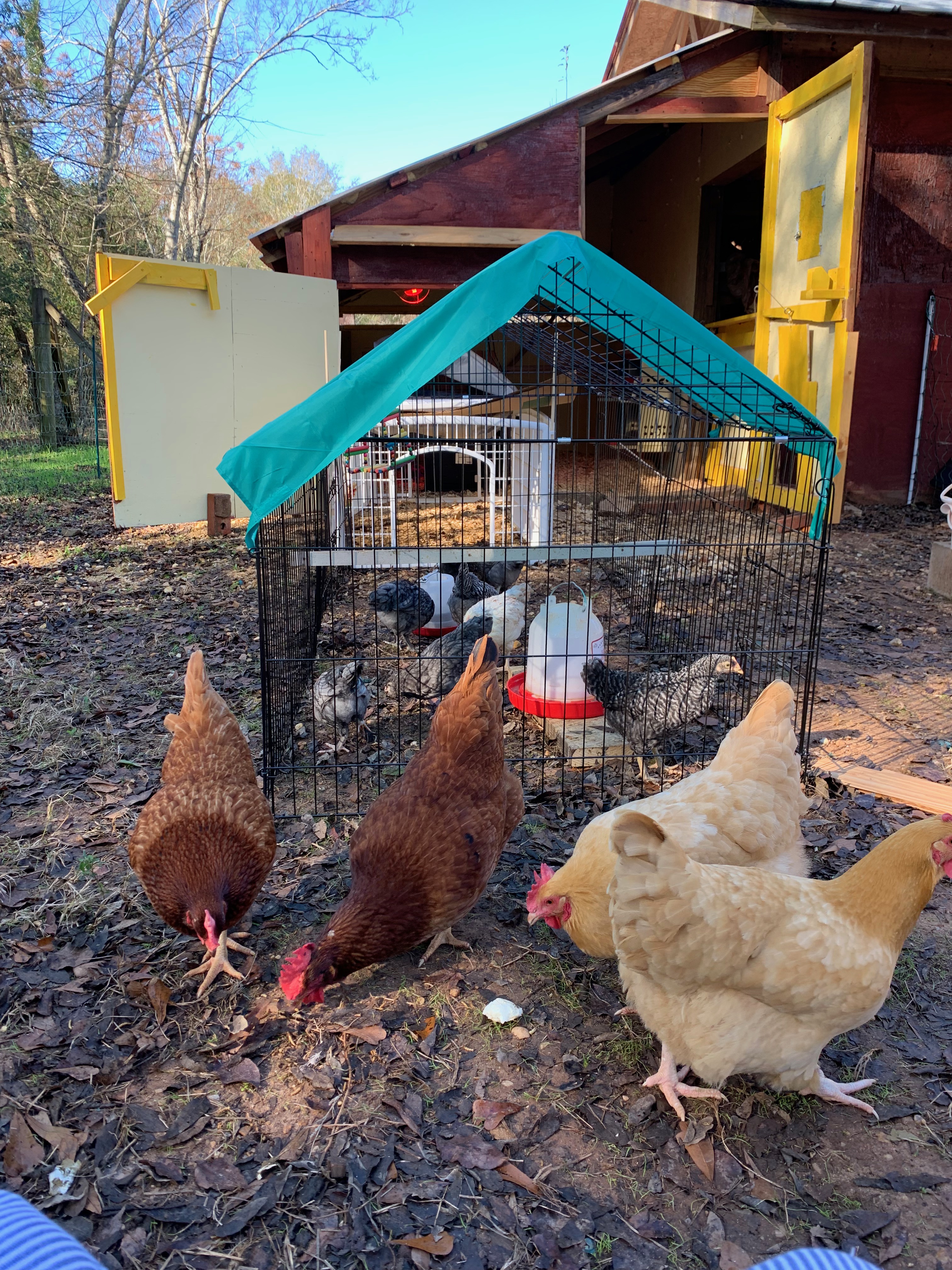 It was past time for the little ones to start getting out into the open spaces where they will live life. Lying in bed, after several movie marathons, I’d been ‘hinking,’ like my girl Maria likes to say, and had a plan to get the babies out in the chicken yard protected from the big hens. We could expect those big mamas to be really mean to them if we threw them all in together. It is one of the comic curses of our marriage that Sherod and I have a hard time communicating around a project like this. I tried to explain and draw a picture in the air of what I was thinking. Sherod snort-laughed and began to wave his arms in exaggerated imitation of me. Of course, I couldn’t keep a straight face so I threw up my arms and walked away. “Fine,” I thought, “I will take care of it myself.” With all that time not doing a whole lot, I kept thinking and thinking, convinced I could find a solution.