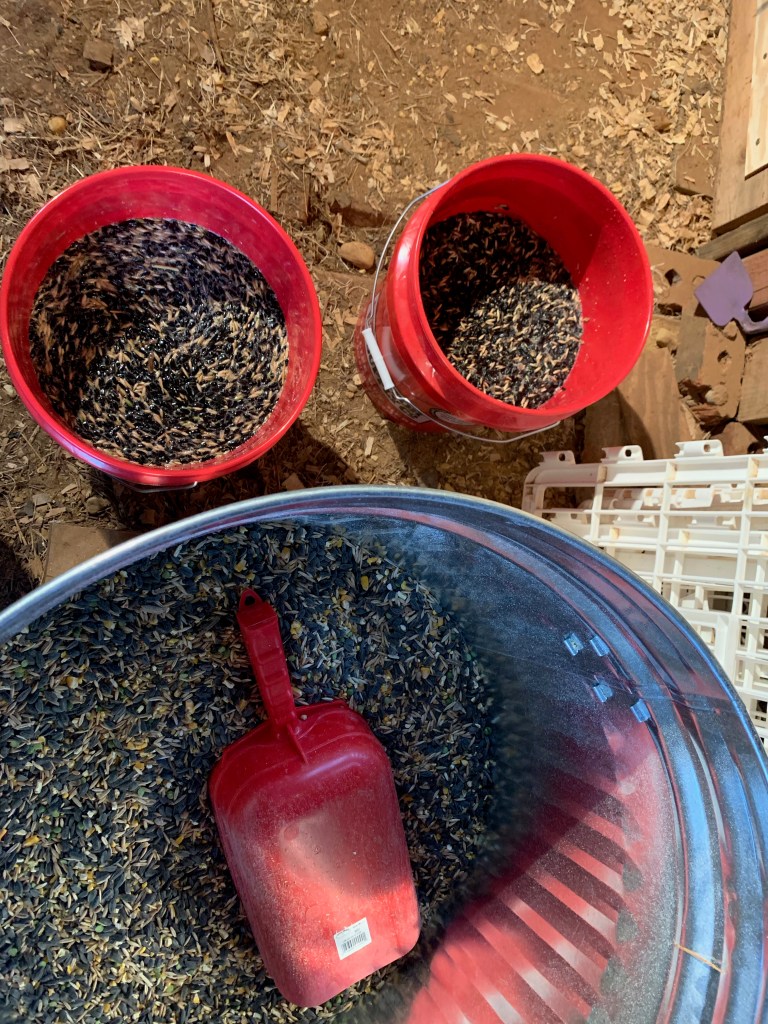 With my morning coffee, I’ve been watching YouTube videos and jumping down rabbit holes of learning about chicken care. I now make my own chicken food by mixing split peas, lentils, flax seed, black oil sunflower seeds, whole oats, whole wheat berries and cracked corn. I’m learning how to ferment the mix to make it go further and to include probiotics good for my girls’ and boy’s gut in their diet. I’m also getting my weight training in since this involves slinging around 40 and 50 lbs. bags of feed.🤪